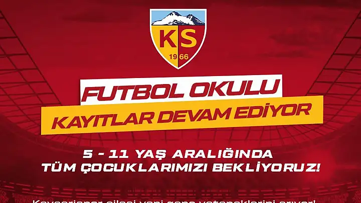 Altyapıyı sağlam tutarak dışa bağımlılığı en aza indirmek isteyen Sarı-Kırmızılı kulüpte kayıtlar başladı. Kayserispor Futbol Okulu, öncelikli olarak çocuklara futbolu sevdirmek istiyor. Temel teknik becerileri kazandırma ve takım ruhunu aşılayarak yeni yıldızlar yetiştirmek isteyen Sarı-Kırmızılı kulüp, eğitimler sunuyor. Antrenörler, çocukların fiziksel ve mental gelişimlerini sağlamak için hazır. Özel bir eğitim programlarının uygulanacağı Kayserispor Futbol Okulu'nda çocukların futbol becerilerini geliştirmek, takım oyununu öğrenmesini sağlamak için start veriliyor.