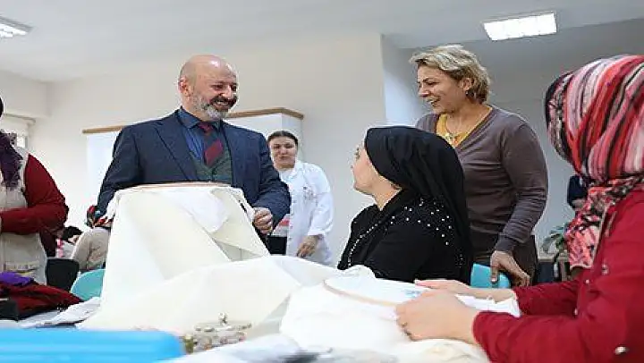 Kocasinan Akademi ile çok çeşitli alanlarda hizmet verdiklerini belirten Başkan Çolakbayrakdar, “Kocasinan Akademi çatısı altında genç, yaşlı, kadın, erkek olmak üzere toplumun her kesiminden herkesin kişisel donanımlarını artırmak, saklı kalmış yeteneklerini gün yüzüne çıkarmak için eğitim faaliyetleri yürütüyoruz. Haftanın belirli günlerinde katılım göstererek el emeği göz nuruyla çok sayıda eser ortaya koyan hanım kardeşlerimizin verilen eğitimlerden son derece memnun olduklarını gördük. Kursiyerlerimiz, almış oldukları eğitimlerle her geçen gün daha da donanımlı hale geliyor ve kendilerini geliştiriyorlar. Gerekli eğitim sağlandığında ve imkan sunulduğunda çok güzel eserlerin ortaya çıktığını bizlere gösteren hanım kardeşlerime kolaylıklar diliyor, emeği geçenlere teşekkür ediyorum.” ifadelerini kullandı.