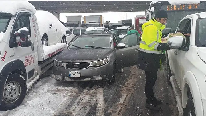 Kayseri'de dün gece saatlerinden itibaren etkisini artırarak devam ettiren kar ve tipi nedeniyle ulaşımda aksamalar meydana geldi. Kayseri - Malatya karayolu ise olumsuz hava koşulları nedeniyle ulaşıma kapandı. Ekipler, Mimarsinan Organize Sanayi Bölgesi girişinden itibaren araç geçişine izin vermezken, burada uzun araç kuyrukları oluştu. Mimarsinan Organize Sanayi Bölge Müdürlüğü de araçlarıyla yolun açılmasını bekleyen vatandaşların yardımına koştu. Bölge müdürlüğü ekipleri, yoğun kar yağışı altında yolun açılmasını bekleyen vatandaşları ziyaret ederek, kendilerine yiyecek ve içecek yardımında bulundu. Şoför ve yolcularla görüşen Bölge Müdürlüğü ekipleri, vatandaşların sıkıntı yaşamaması için girişimlerde bulundu.