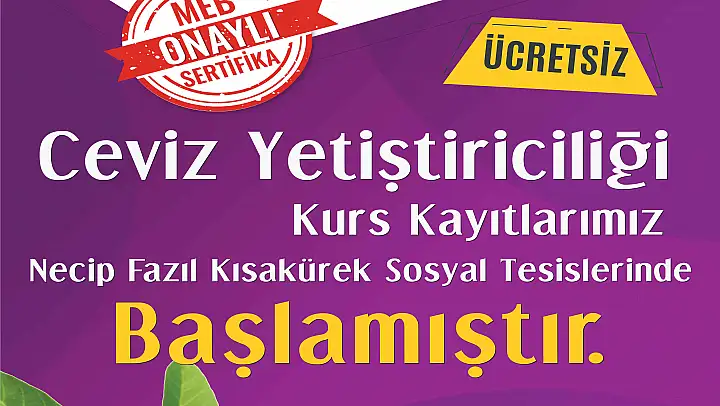 Melikgazi Belediyesi Mel-Mek Kursları çerçevesinde yine bir ilke imza atarak Ceviz Yetiştiriciliği Kursu açtı. Melikgazi Halk Eğitim Merkezi ve İlçe Milli Eğitim Müdürlüğü tarafından ortaklaşa düzenlenecek kurs için başvurular başladı.