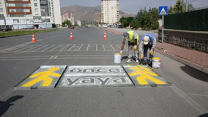 Melikgazi Belediye Başkanı Dr. Mustafa Palancıoğlu, Melikgazi ilçe sınırları içerisinde yer alan okul yolların giriş ve çıkış yönlerine yaya öncelikli yazısı ve logoları çizildiğini söyledi.