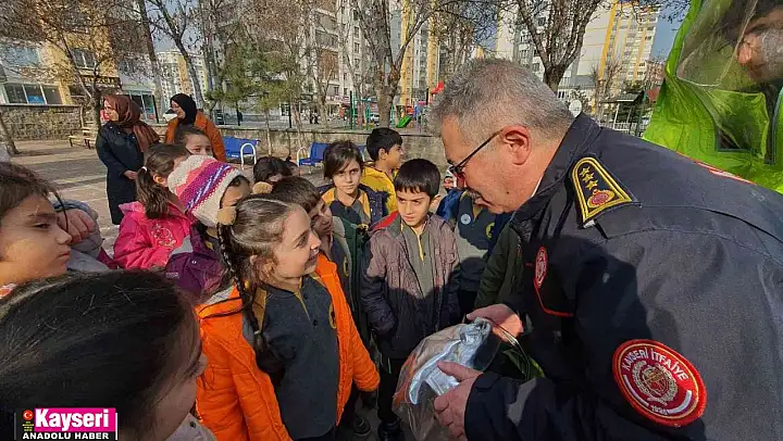 Kayseri Büyükşehir Belediyesi İtfaiye Daire Başkanlığı ekipleri, ilkokul öğrencilerine itfaiyecilik mesleğini tanıttı ve kullandıkları gereçleri tanıttı. Eğitimde yangın söndürme konusunda da öğrencilere bilgiler verilirken, İtfaiye Daire Başkanı Mustafa Kızılkan, öğrencilere deprem anında hayat kurtaran çök, kapan, tutun tatbikatını gerçekleştirdi.