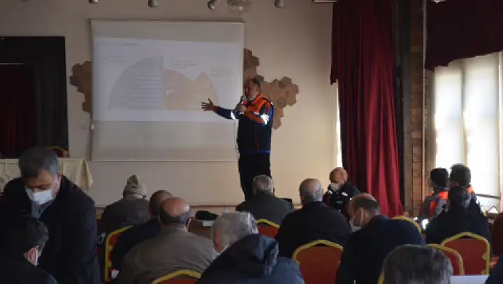 AFAD personelleri tarafından gerçekleşen eğitimde ani bir deprem veya afet durumunda muhtarların ne yapmaları gerektiği ile enkaz altındayken ne yapmaları gerektiği gösterildi.