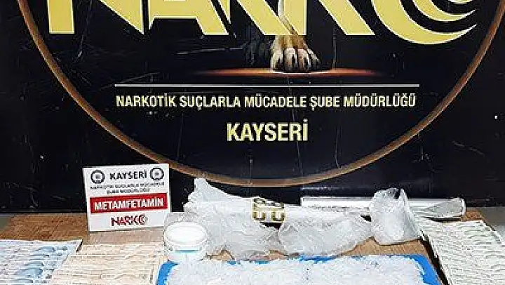 Narkotik Suçlarla Mücadele ekipleri tarafından gelen ihbar üzerine yapılan çalışmalarda Melikgazi ilçesine bağlı Şeker Mahallesinde bulunan bir evde arama yapıldı. İkamet aramasında 537 gram metamfetamin, 1 adet uyuşturucu paketlemek için kullanılan folyo ve 5 bin 150 TL para bulundu.
