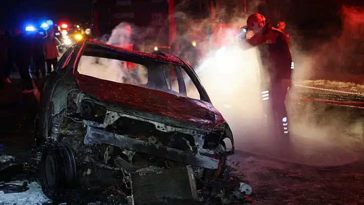 Çarpmanın etkisi ile motosiklet otomobilin altına girdi. Daha sonra otomobilin altına giren motosiklet ve otomobil bir anda yanmaya başladı. Diğer sürücülerin ihbarı üzerine olay yerine polis, jandarma, itfaiye ve sağlık ekipleri sevk edildi. Araç sürücüsü ve yola savrularak ağır yaralanan motosiklet sürücüsü yoldan geçen vatandaşlar tarafından kaza yerinden uzaklaştırılarak güvenli alana çekildi.