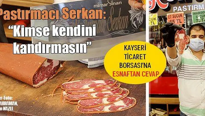 Haber-Foto: Şeref KAHRAMAN, Ekrem NAZLI - Kayseri Ticaret Borsası Başkanı Recep Bağlamış'ın korona virüsün pastırma ve sucuk satışlarını etkilemediğini ifade etmesi pastırma satışı yapan esnafı kızdırdı. Esnaf Özkara, 'Geçen sene on kilo pastırma sattığımız adam yarım kilo almadı. Bir geçen seneki işimize bakalım, bir de bu seneki işimize bakalım. Kimse kendini kandırmasın' dedi.