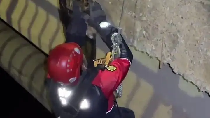 Sivas'ta Kızılırmak üzerindeki bir köprünün ayağında mahsur kalan kedi, itfaiye ekiplerinin başarılı çalışmasıyla kurtarıldı.