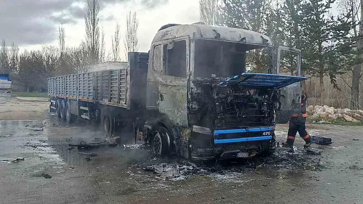 Sivas'ta park halindeki tır alevlere teslim oldu