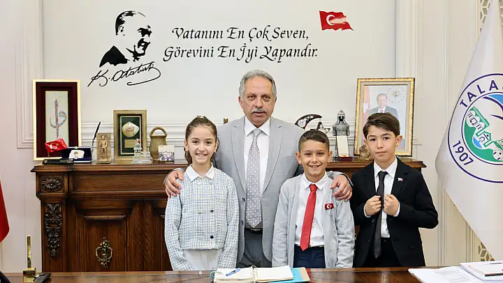 Talas Belediye Başkanı Mustafa Yalçın, 23 Nisan Ulusal Egemenlik ve Çocuk Bayramı dolayısıyla başkanlık koltuğunu minik misafirlere emanet etti. TOKİ Levent Çetinkaya İlkokulu öğrencilerini makamında ağırlayan Başkan Yalçın, geleceğin teminatı olan çocuklarla keyifli bir gün geçirdi.