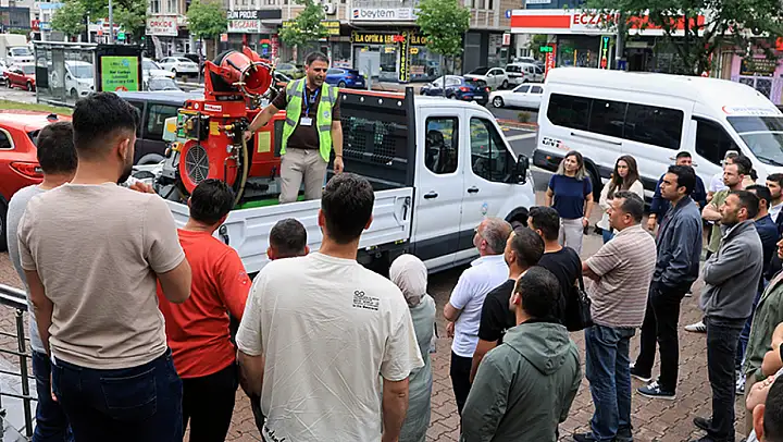 Talas Belediyesi Veteriner İşleri Müdürlüğü ekipleri, Geriatri Hastanesi Toplantı Salonunda düzenlenen uygulamalı eğitim kapsamında biyosidal ürünlerde kullanılan cihazlarla araçların tanıtımını yaptı, uygulama tekniklerini anlattı ve sahadan elde ettikleri tecrübeleri katılımcılarla paylaştı. Eğitim boyunca gösterilen ilgi, Talas Belediyesi'nin sahadaki uzmanlığına duyulan güveni bir kez daha ortaya koydu.