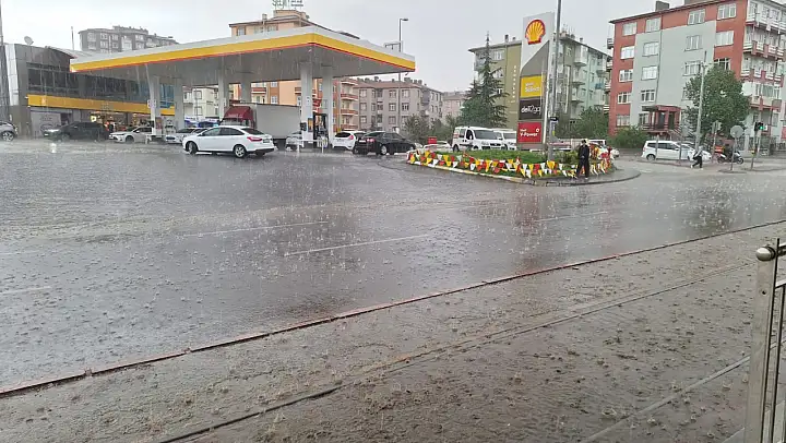 Şehir merkezine doğru ilerledikçe hava durumu tamamen değişti. Merkezde güneşli hava hakim olurken, Talas ilçesinde dolu ve sağanak yağış etkili oldu.