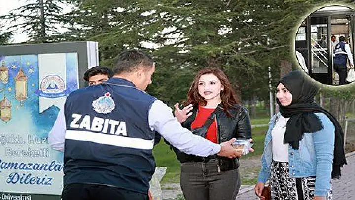 Zabıta ekipleri, iftar vaktinde evlerine yetişemeyenler için otobüs ve tramvay durakları ile yollarda bekliyor. Mobil araçlarla çeşitli noktalarda bekleyen ekipler içerisinde su, börek, kurabiye ve tulumba tatlısının bulunduğu iftariyelikleri dışarda kalan vatandaşlara dağıtıyor. Yolcuları evlerine yetiştirmeye çalışan görevi başındaki otobüs ve taksi şoförleri ile sürücülere de verilen iftariyeliklere olumlu geri dönüşler geliyor.