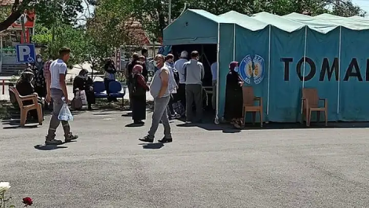 Covid-19 salgın hastalığı nedeniyle aşı randevusu alan ve aşı önceliği bulunan kişilerin aşılanması için Tomarza Devlet Hastanesi bahçesine aşı çadırı kuruldu.