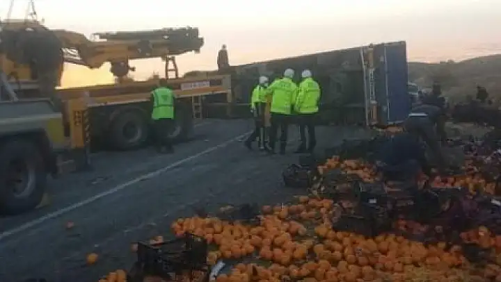 Yeşilhisar ilçesinde direksiyon hakimiyeti kaybolan kamyon yan yattı. Kazada, kamyonun dorsesinde bulunan tonlarca mandalina yola saçıldı.