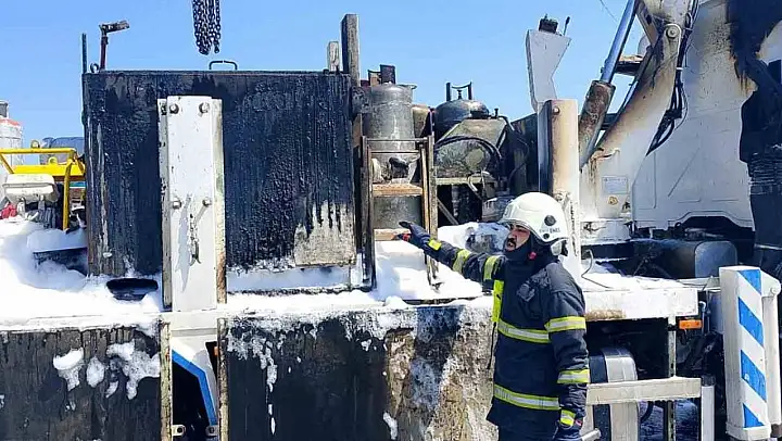 Tüplerin de bulunduğu kamyon kasasında yangın çıktı!