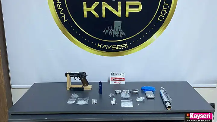 Adreste ve bir otomobilde yapılan aramada, 30 gram metamfetamin, uyuşturucu hap, hassas terazi, ruhsatsız tabanca ele geçirildi.