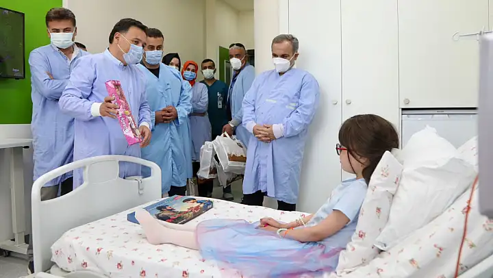 Tedavi gören miniklerle yakından ilgilenen Vali Çiçek, sohbet ederek sağlık durumları hakkında bilgi aldı. Miniklere hediyelerde bulunan Vali Çiçek'in çocuklarla kurduğu samimi sohbet dikkatlerden kaçmadı.