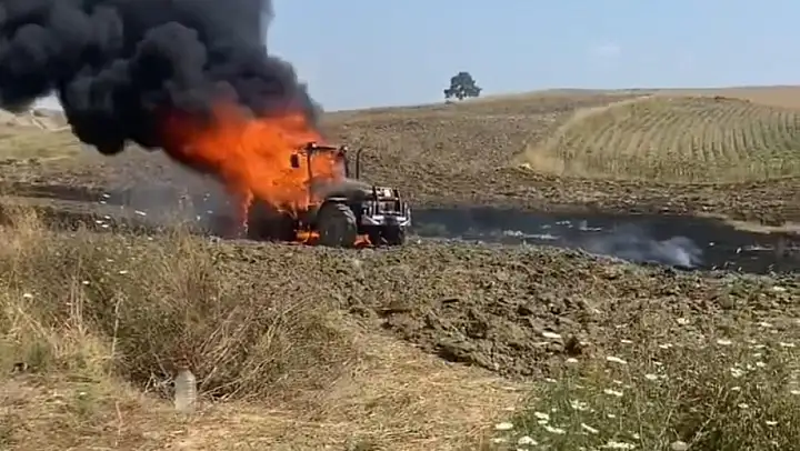 Yangında traktör tamamen kullanılamaz hale geldi.