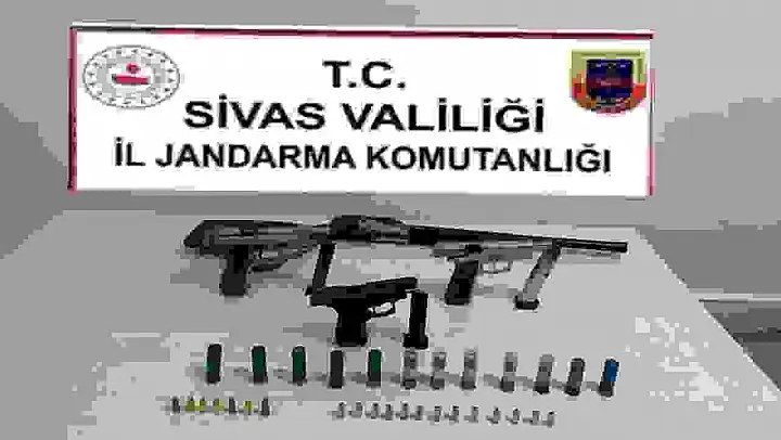 Sivas'ta hakkında silahlı tahdit suçlamasında bulunulan kişinin evinde arama gerçekleştirildi, yapılan aramada 3 tabanca birde tüfek ele geçirildi.