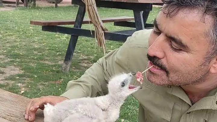 Yavru kartalın bakımını üstlenen personel, yavru kuşa şefkatle yaklaşıp onu annesi gibi besliyor. Personel tarafından verilen bütün yiyecekleri geri çevirmeden yiyen yavru kuş, doğada kendi ayaklarının üzerinde duruncaya kadar gerekli bakımı yapılarak ardından yaşadığı doğal ortamına bırakılacak.