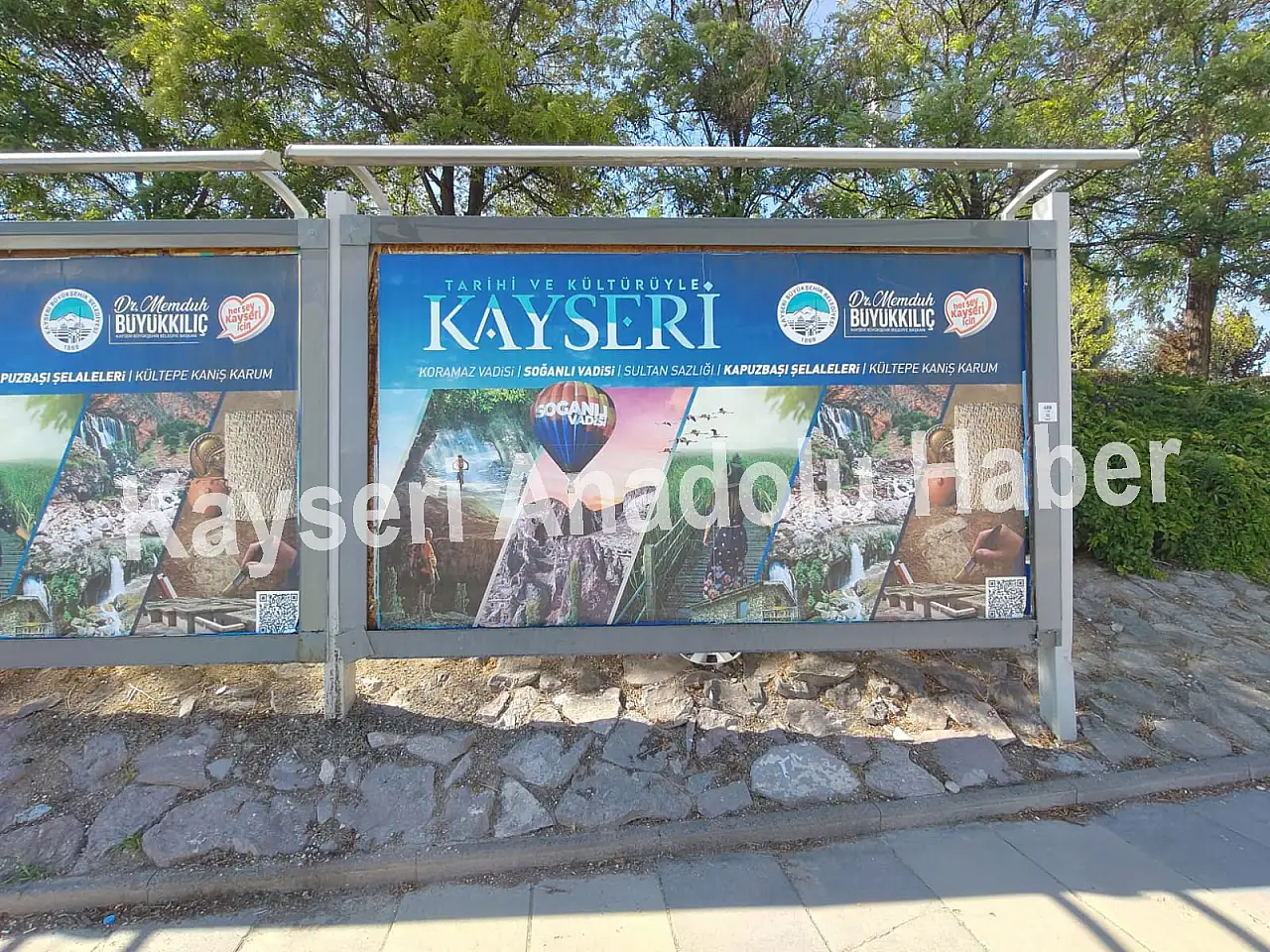 Ankara'da açık hava reklam panolarında yer alan Kayseri tanıtım görsellerinde Kayseri'nin tarihi ve doğal güzellikleri yansıtıldı.