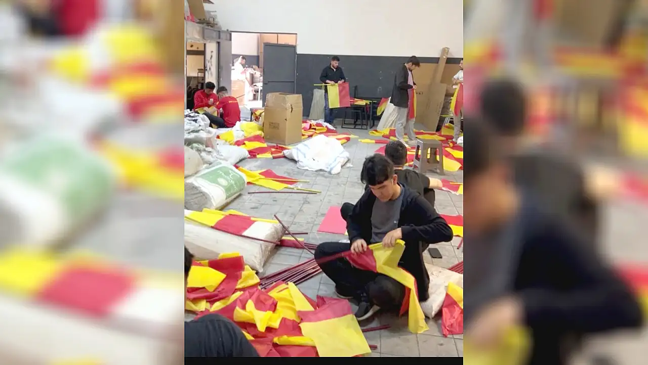 Kapalı Kale'nin genç taraftarları, bayrak mesaini yaptı. Gece boyunca 10 bin bayrağı hazırlayan gençler, tribünde olduğu kadar el yetenekleriyle de alkışı hak etti.