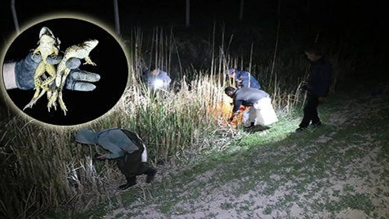 Avcılar gaz lambalarıyla gecenin karanlığında kurbağa avına çıktı