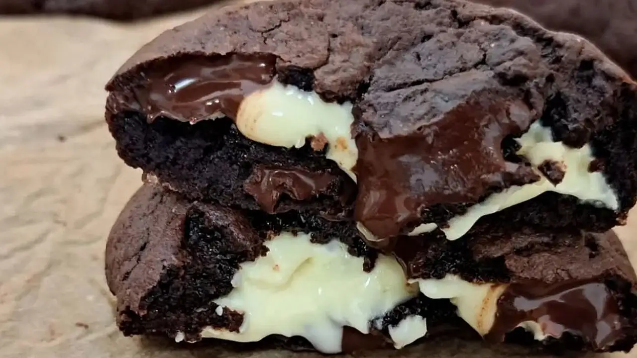 Hamurumuzu buzdolabında 15 dakika dinlendirelim. Hamuru eşit parçalara bölelim. Elimizle incelttiğimiz hamurun içine 2 parça beyaz çikolata koyup kapatalım. Yuvarlak şekil verdiğimiz içi beyaz çikolata dolgulu kurabiyelerimizi pişirme kağıdı serili fırın tepsisine dizelim. 175 derece önceden ısıtılmış fırında 10 dakika pişirelim. Afiyet olsun!