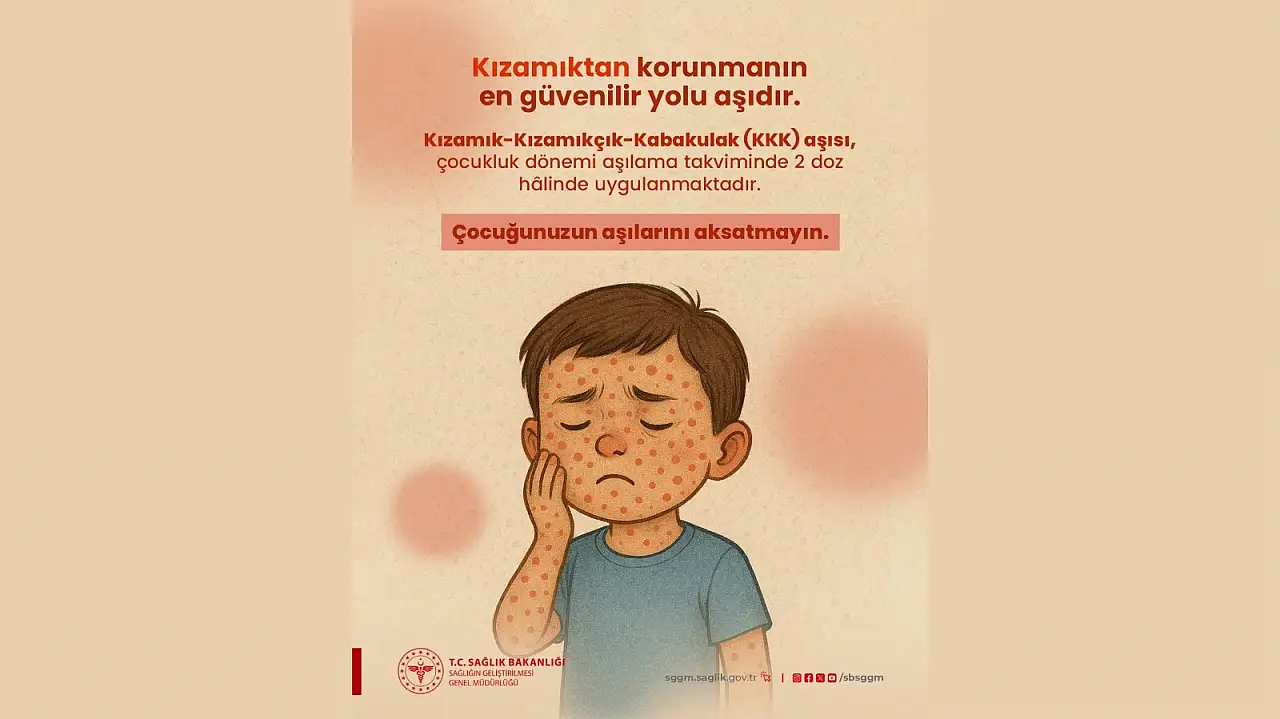 Sağlık Bakanlığı Sağlığın Geliştirilmesi Genel Müdürlüğü sosyal medya hesabı üzerinden yaptığı paylaşımda Kızamık hastalığına dikkat çekti.