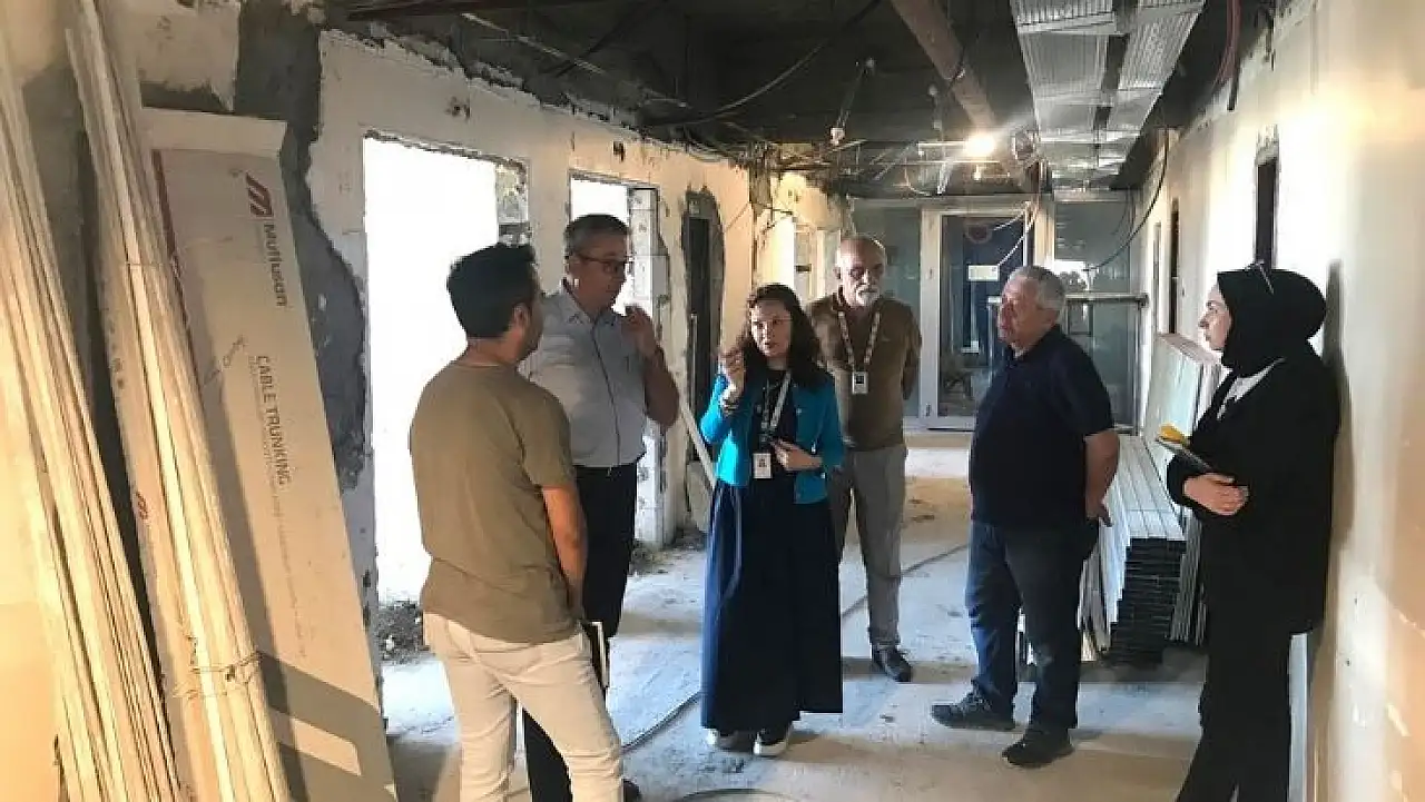 Hastaneler Başhekimi Prof. Dr. İbrahim Halil Kafadar, saha çalışmaları esnasında yaptığı açıklamada, ‘Gevher Nesibe Hastanemiz batı yönündeki kliniklerimizin fiziki iyileştirme çalışmaları devam ediyor. Daha öncesinde 12. katta bulunan Göğüs Cerrahisi Kliniği ve Yoğun Bakım Ünitesi ile Anesteziyoloji ve Reanimasyoan Anabilim Dalı Ek Yoğun Bakım Ünitesi ile 11. Kat Üroloji Kliniklerimizin fiziki iyileştirme çalışmalarını tamamlamıştık.’ diye konuştu.
