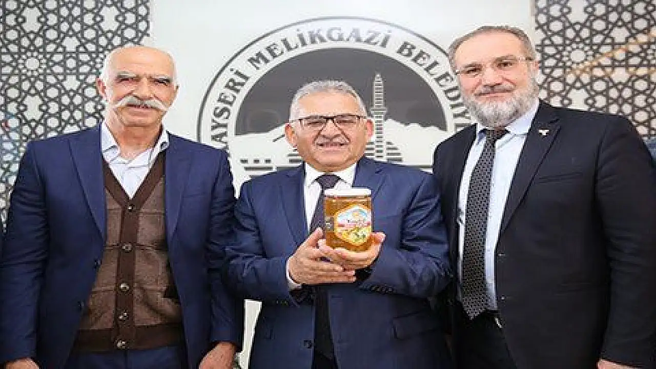 Kayseri Arı Yetiştiricileri Birliği Başkanı İbrahim Bozdağ ve Yönetim Kurulu Üyeleri, Kayseri Melikgazi Belediye Başkanı ve Büyükşehir Belediye Başkan Adayı Dr. Memduh Büyükkılıç'ı makamında ziyaret ettiler.