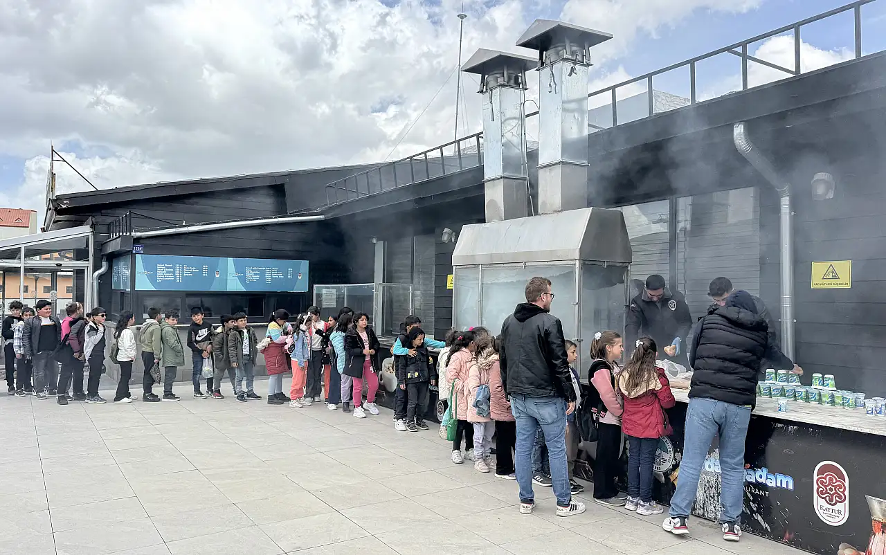 Erciyes’te teleferik deneyimi yaşayan öğrencilere daha sonra sucuk ekmek ikram edildi. Öğrenciler, bu unutulmaz deneyim için Kayseri Büyükşehir Belediye Başkanı Memduh Büyükkılıç’a teşekkür etti.