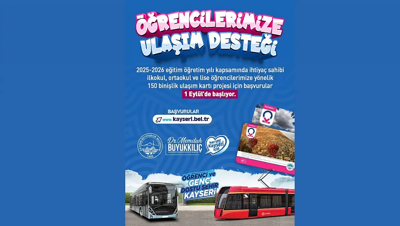 Kayseri Büyükşehir Belediye Başkanı Memduh Büyükkılıç, yeni eğitim dönemi için ihtiyaç sahibi öğrencilere yönelik ulaşım kartı desteğini sürdürecek. Başkan Büyükkılıç, 2025-2026 eğitim öğretim yılında da 150 binişlik ulaşım kartı ile öğrencilerin eğitim hayatlarını kolaylaştırmaya devam edecek. Başvurular, 1 Eylül’de başlayacak.