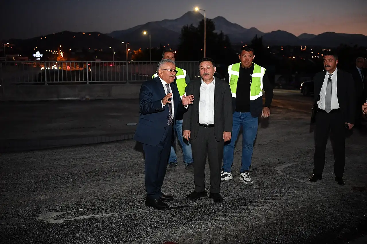 Başkan Büyükkılıç, kavşak çalışmaları hakkında bilgi verirken, ‘‘Her zaman olduğu gibi bizi yalnız bırakmayan Sayın Valimize özellikle teşekkür ediyorum. Burada sürpriz olsun dedim. Talas’tan çıkan vatandaşımız Erciyes Üniversitesi yönüne hiçbir ışığa takılmadan ulaşabilecek. 85 günde bu hale geldi, alt kısmın asfaltı ve peyzajıyla birlikte şehrimize kazandıracağız’‘ ifadelerini kullandı.