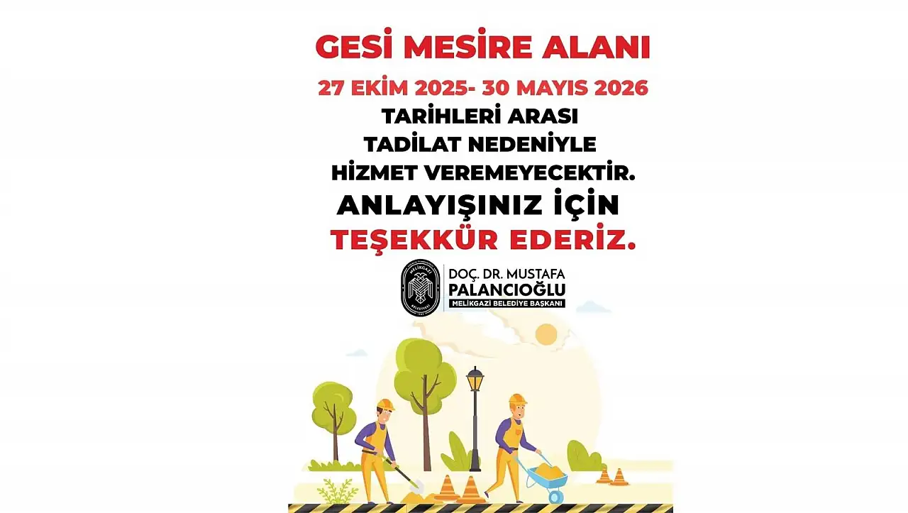 Melikgazi Belediye Başkanı Mustafa Palancıoğlu 24 Ekim Cuma günü Gesi Mesire Alanını ziyaret etmiş, ‘‘Gesi Mesire Alanımızı hem genişletiyoruz hem de çok güzel bir botanik bahçesine dönüştürüyoruz. Özellikle şu anda başlayan çalışma önümüzdeki yaz mevsiminde Gesi Mesire Alanını çok daha farklı bir konuma getirecek. Bu bölge vatandaşlarımızın hizmet aldığı, zaman geçirdiği en güzel bölgelerden biri haline gelecek’ açıklamalarında bulunmuştu. Gesi Mesire Alanının kapanma haberinin verilmesiyle birlikte çalışmalara başlandığı ifade edildi.