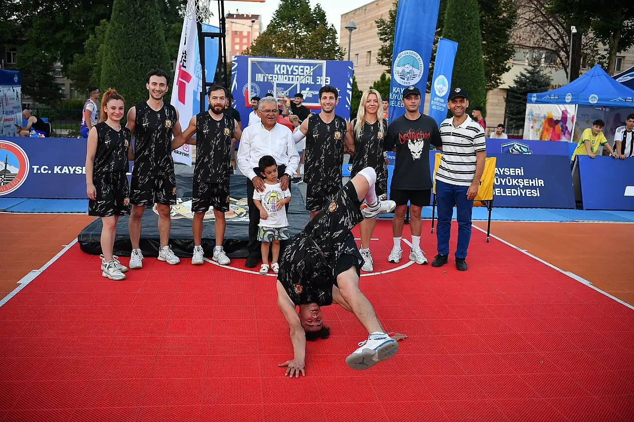 Kayseri Büyükşehir Belediyesi ev sahipliğinde düzenlenen ve Türkiye’de bir ilk olan FIBA onaylı 3x3 Uluslararası Basketbol Turnuvası, Cumhuriyet Meydanı’nda coşkulu bir atmosferde devam ediyor. Başkan Memduh Büyükkılıç’ın yerinde takip ettiği organizasyon, hem spor hem de görsel şölen açısından dikkat çekiyor.