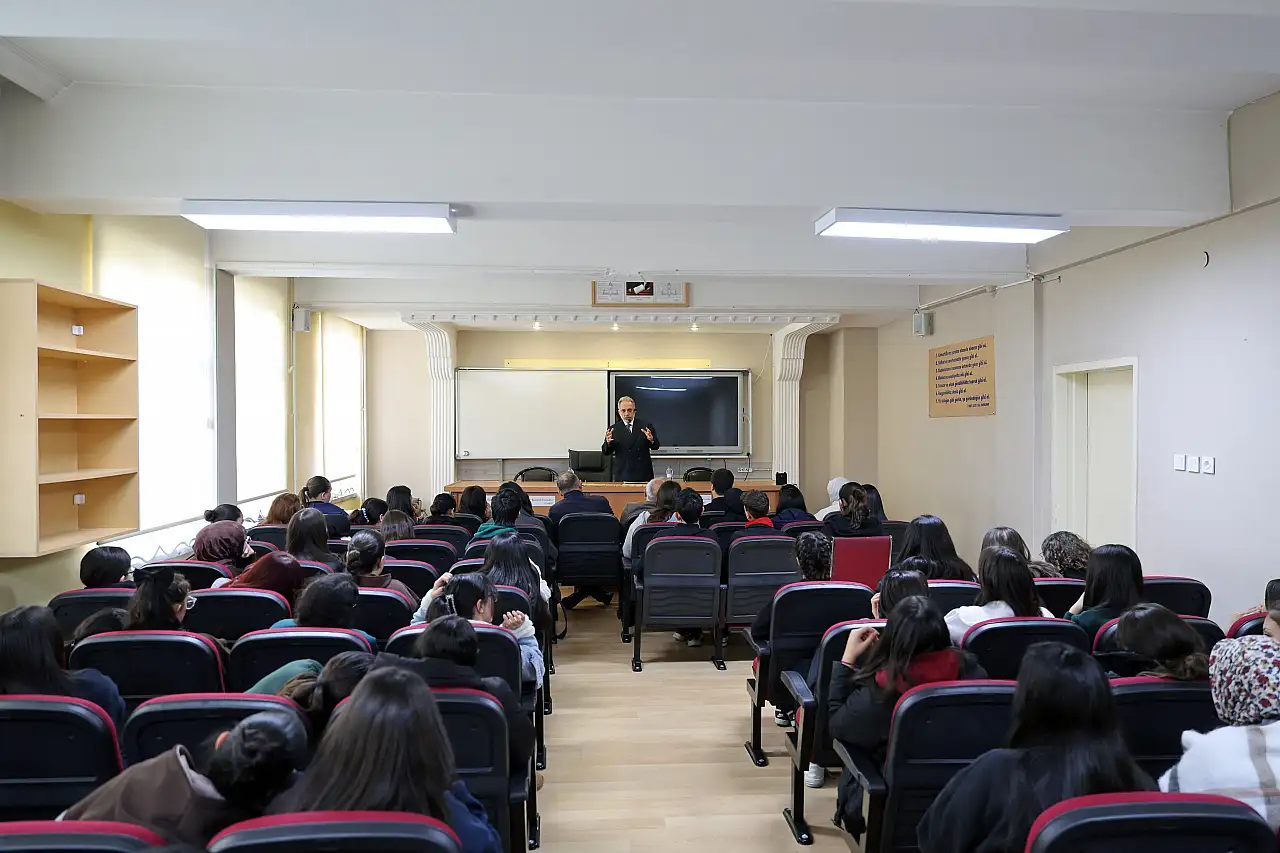 Okulun konferans salonunda düzenlenen programda gençlerin sorularını içtenlikle yanıtlayan Başkan Yalçın, Talas Belediyesi olarak eğitime ve gençliğe yapılan her yatırımın, Türkiye’nin yarınlarına yapılan yatırım olduğuna vurgu yaptı. Öğrencilerin düşüncelerini dikkatle dinleyen Yalçın, gençlerin enerjisi ve vizyonunun kendilerine güç verdiğini ifade etti.