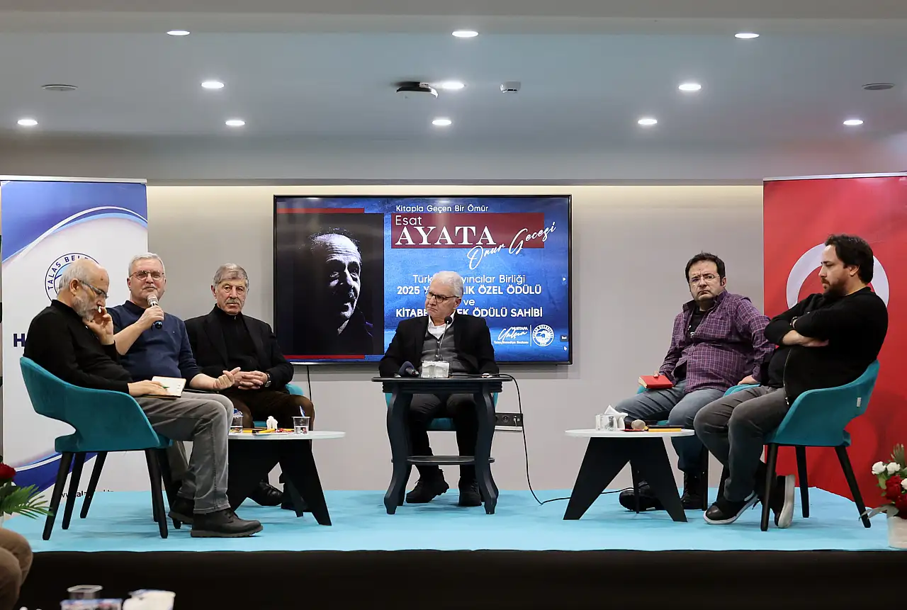 Talas Belediye Başkanı Mustafa Yalçın, Kayseri'de kitap denince akla gelen ilk isimlerden biri olan Akabe Kitabevi sahibi Esat Ayata onuruna anlamlı bir gece düzenledi. 'Kitapla Geçen Bir Ömür' temasıyla gerçekleştirilen program, edebiyat dünyasını ve kitapseverleri bir araya getirdi. Detaylar haberimizde...