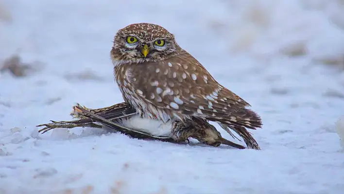 Belgesellik görüntü: Kukumav kar üzerinde avlandı