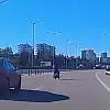 Adana'da bisikletiyle otoyolda şerit değiştiren bir kişinin kazaya sebebiyet verebilecek tehlikeli anları araç içi kamerasıyla saniye saniye görüntülendi.