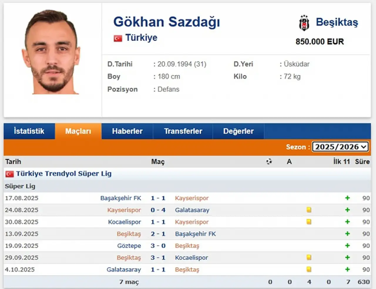 Kayserispor'dan Beşiktaş'a transfer olan Gökhan Sazdağı, futbol sahalarında belki de bir daha zor görülecek bir durum yaşadı. Hem Kayserispor hem de Beşiktaş formalarıyla aynı takımlara karşı sarı kart gören Gökhan Sazdağı, cezalı duruma düştü. Detaylar haberimizde…
