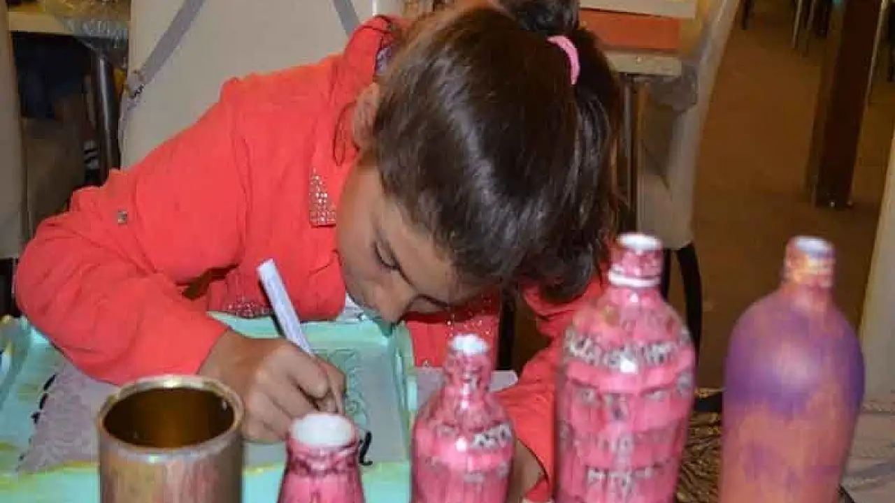 Yaşları 9 ile 15 arasında değişen toplamda 23 öğrencinin olduğu kursta Usta Öğretici olarak görev yapan Mehtap Erol, "Burada çocuklarımıza geri dönüşüm ağırlıklı ahşap boyama dersleri vermekteyiz. Keyifli bir çalışma ortamımız var. Materyal olarak kağıt havlu ruloları, cam şişeler, konserve ve kahve kutuları, su şişeleri gibi malzemeler kullanıyoruz. Bu malzemelerin üzerine burada peçeteden kabartmalar yapıyor, duvar kağıdı ve perde kataloglardan desenler çıkarıyoruz. Amacımız buradan çocuklara geri dönüşüm öğretmek. Çocuklarımız böyle bir şeyi dışarıda gördüklerinde, bunu biz nasıl değerlendirebiliriz diye düşünsünler istiyoruz. Çocuklarımızın hayal gücünü geliştirmek istiyoruz ve kendilerine kalemlikler, masa ve sehpa süsleri yapıyorlar" dedi.