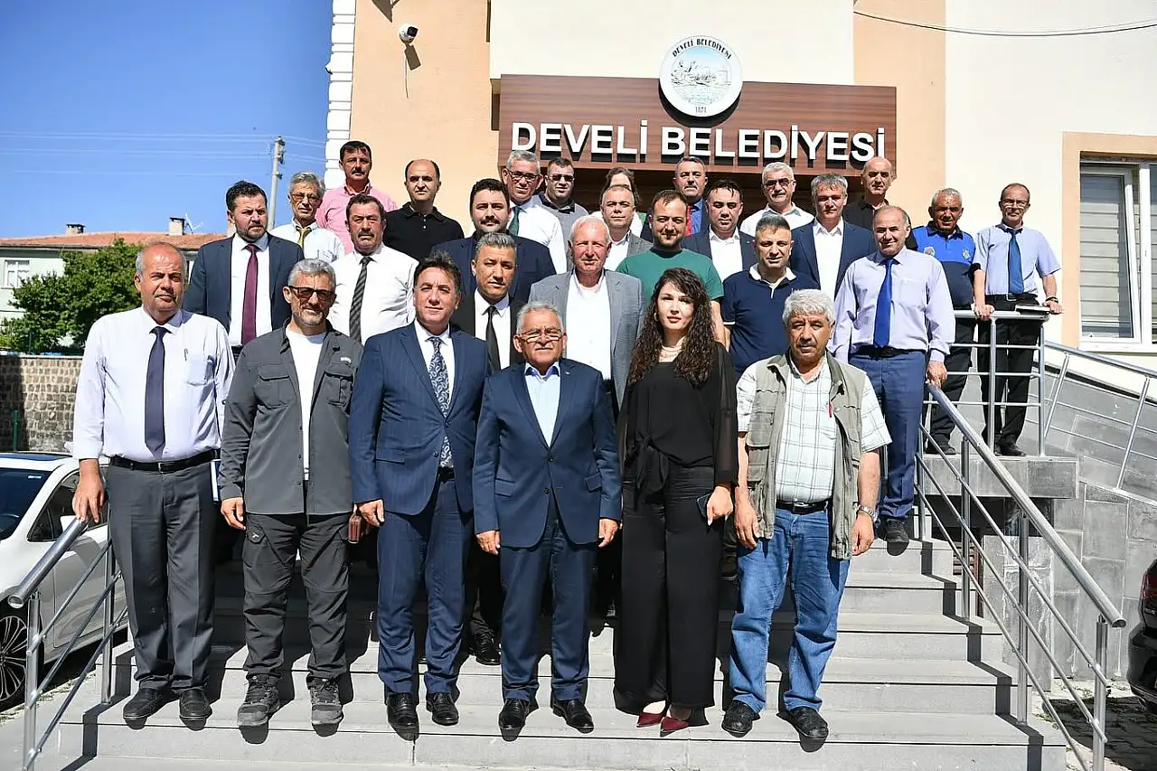 Büyükşehir Belediye Başkanı Memduh Büyükkılıç ve ekibi, Develi Belediyesi’nde Başkan Adem Şengül ve ekibi tarafından çiçeklerle karşılandı.