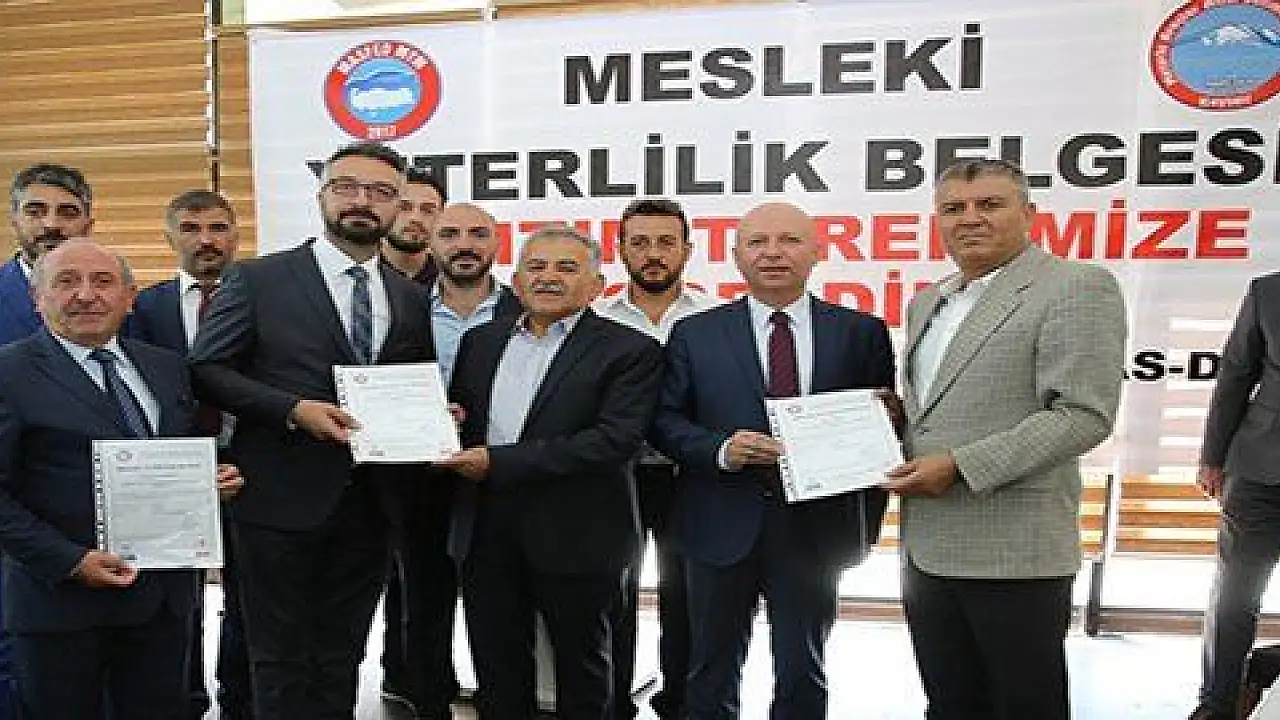 Melikgazi Belediye Başkanı Memduh Büyükkılıç, Kayseri Motorlu Araçlar Alım Satımcılar Derneği tarafından düzenlenen Mesleki Yeterlilik Belgesi Dağıtım törenine katıldı. Başkan Büyükkılıç, belge almaya hak kazanan esnaflara belgelerini takdim ederek, başarılar diledi.