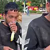 Caddede güpegündüz bali çekip kendinden geçti