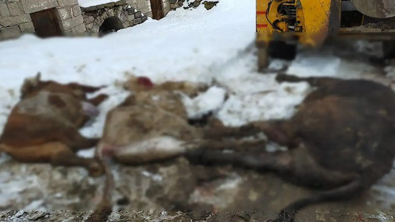 Telef olan hayvanlar vatandaşların yardımıyla enkazdan çıkarıldı.