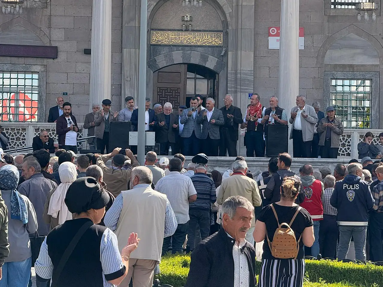 Kayseri Cumhuriyet Meydanı'nda bulunan Bürüngüz Camii'nde Cuma namazı sonrası çıkışında bir araya gelen vatandaşlar Gazze ve Filistin için dua etti.