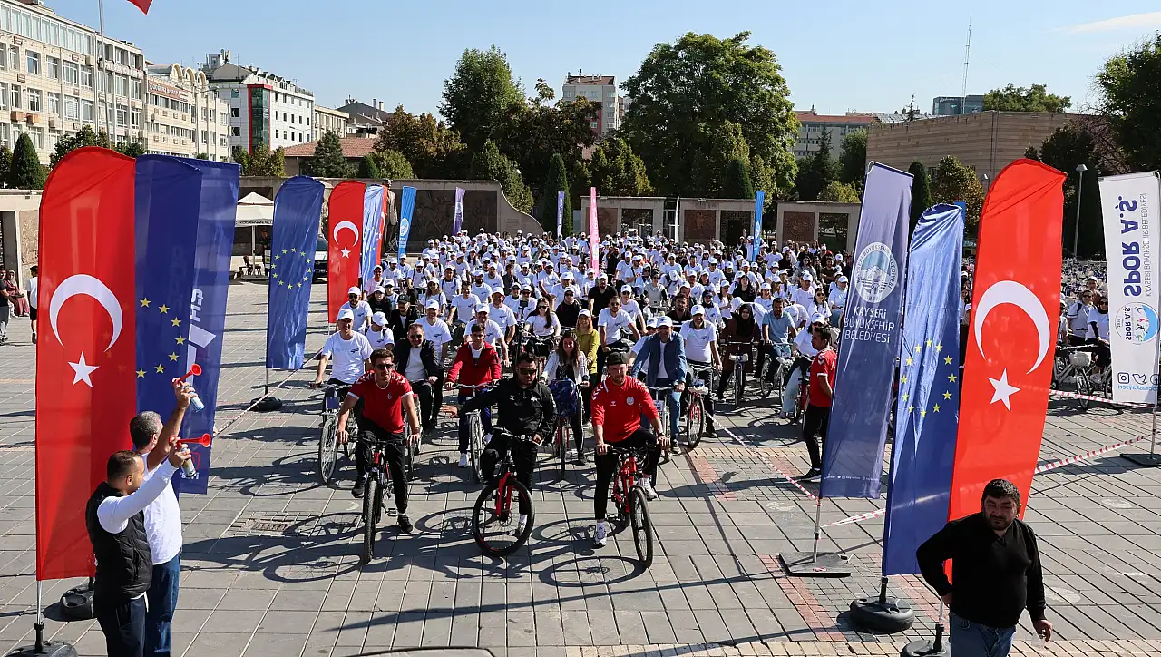 Kayseri Ticaret Odası AB Bilgi Merkezi, Kayseri Büyükşehir Belediyesi ve Spor A.Ş. iş birliğiyle, Avrupa Birliği tarafından finanse edilen Avrupa Hareketlilik Haftası kapsamında düzenlenen bisiklet turu Cumhuriyet Meydanı'nda 500 kişinin katılımı ile gerçekleşti. Bakın pedallar ne için çevrildi? Detaylar Kayseri Anadolu Haber'de...