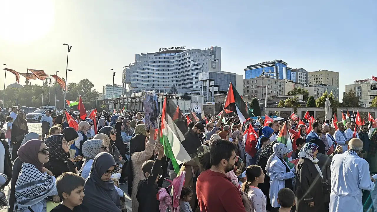 Yürüyüşün ardından grup adına konuşma yapan Dr. İsa Üzüm, "Tam iki yıl oldu. Kelimelere nasıl sığar neler söylemeliyim. Bunun adına ne demeliyiz; savaş, katliam, işkence, haydutluk, canilik, ikiyüzlülük, hainlik, soykırım kelimesi bile artık yeterli gelmiyor. Bir anlığına gözlerinizi kapatın ve Gazze’de yaşayan bir ailenin yerine koyun. çocuklarınızın korku dolu gözlerle size baktığını, yankılanan patlama seslerinin kulaklarınızdaki çınlamasını hayal edin. Aylardır gecelerini ne kadar uzun ve uykusuz geçiren bir Gazze var. Artık çok yorulan ve dayanma gücünün en üst düzeyde sınırlarını zorlayan bir Gazze var. Gazzeli çocuklar bu yıl da okula başlayamadı. okul açılmadan önce çantalarını, ayakkabılarını hazırlayamadılar. Servislere binip okula gidemediler. Okul formaları kalem defter kitapları yine olmadı. 2 yıldır teneffüs zili çalmadı. Onun yerine siren ve bomba sesleri uykularını böldü. Dersler ful boş geçti. Karne alamadılar. Çünkü onlar çocuk olmanın tanımını bize çok farklı bir şekilde öğrettiler. Gazze’de çocuk olmak, ‘acaba ben de bugün atılan bir bomba ile katledilen binlerce şehit çocuktan birisi olur muyum’ diyebilmek; her gün saatte bir açlıktan, susuzluktan veya bombardımandan ölen çocuklardan biri olmak demektir. Gazze’de çocuk olmak, annesi sedyede yatarken sedyenin ayağına, onu hiç bırakmamak istercesine annesine sarılır gibi sarılmaktır. Gazze’de çocuk olmak, ansızın gelen saldırı ile uzvunu kaybederek ampute kalma korkusu yaşayan binlerce çocuktan biri olabilir miyim kaygısını taşımaktır. Gazze’de çocuk olmak, ‘doktor amca bacağım bir daha çıkar mı’ diye sormaktır. Gazze’de çocuk olmak, on binlerce yetim veya öksüz çocuktan biri ben de olur muyum demenin adıdır. Gazze’de çocuk olmak, eğer şanslı ise ebeveyni veya bir yakını tarafından kefenlenebilmek, bu mümkün olmazsa bir poşetin içerisinde gömülmeyi beklemek demektir" ifadelerini kullandı.
