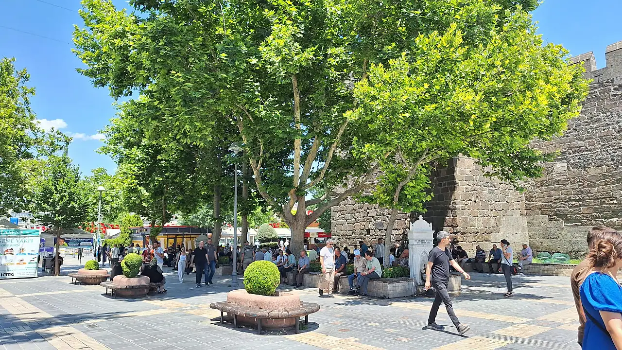 Cumhuriyet Meydanı’ndaki manzara değişmedi. Kentin dört bir yanı yüksek sıcaklıklar nedeniyle boş kalırken, Cumhuriyet Meydanı’nın müdavimi olan emekliler gölgelik alanlarda oturmayı sürdürüyor.